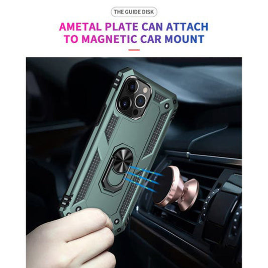 iPhone 14 Pro Max Magnetic Ring Kickstand Hybrid Phone Case - Dark Green