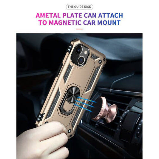 iPhone 14 Magnetic Ring Kickstand Hybrid Phone Case - Gold