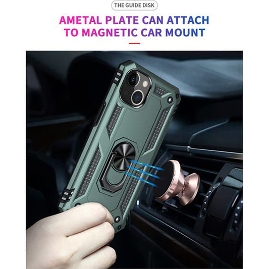 iPhone 14 Magnetic Ring Kickstand Hybrid Phone Case - Dark Green