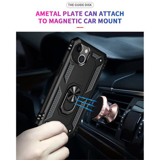 iPhone 14 Magnetic Ring Kickstand Hybrid Phone Case - Black