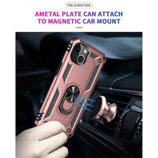 iPhone 14 Magnetic Ring Kickstand Hybrid Phone Case - RoseGold