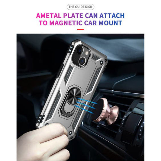 iPhone 14 Magnetic Ring Kickstand Hybrid Phone Case - Silver