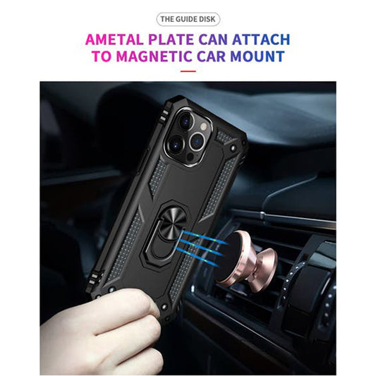 iPhone 14 Pro Magnetic Ring Kickstand Hybrid Phone Case - Black
