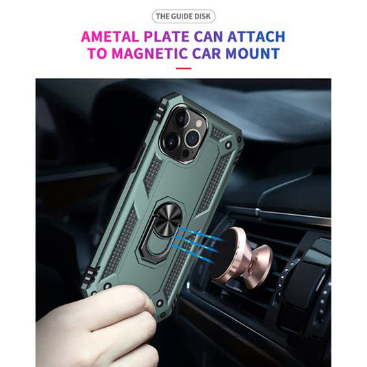 iPhone 14 Pro Magnetic Ring Kickstand Hybrid Phone Case - Dark Green