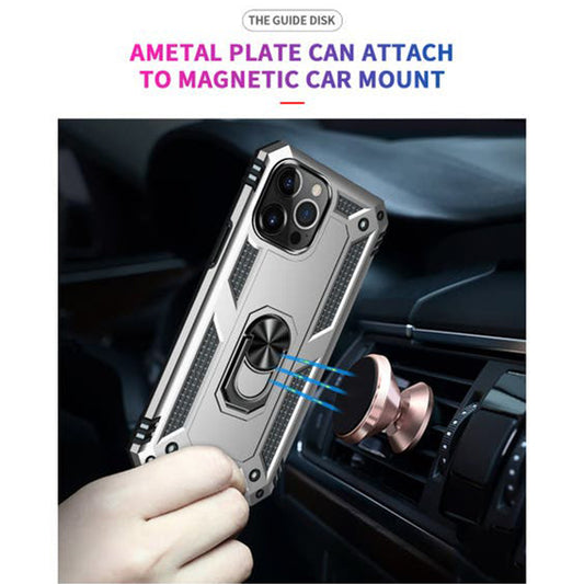 iPhone 14 Pro Magnetic Ring Kickstand Hybrid Phone Case - Silver